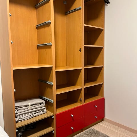 Skohylle til Pax garderobeskap 50 bredde og 58 dybde. Følge ikke med skinner. Men dere kan sikker får den på IKEA