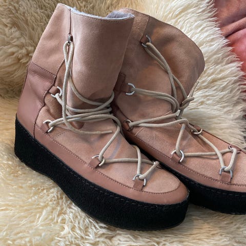 Nude of Scandinavia vinterstøvler i størrelse 39. Støvlene er svarte med en lys såle og mykt fôr som som gir ekstra varme. De har glidelås på siden for enkel av- og påkledning. Veldig lite brukt.