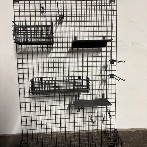 Skådis oppbevaringstavle med masse hengere.