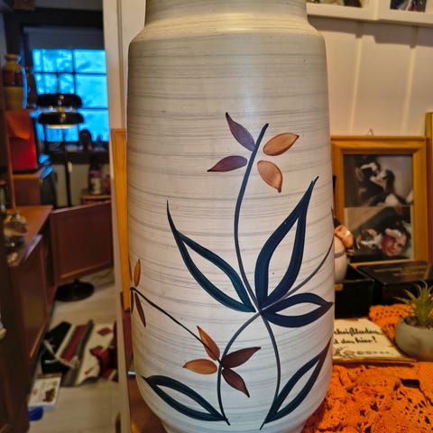 Spennende mintgrønn/brunfarget RETRO gulvurne/gulvvase fra tyske Bay Keramikk