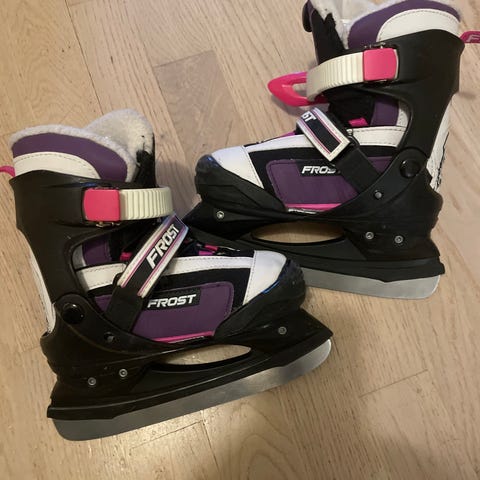 Frost Andre skøyter for barn i størrelse 32. Skøytene har blå farge og er laget av syntetisk materiale. Passer for barn som bruker størrelse 32.