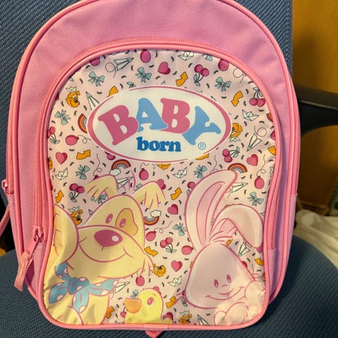Vintage Babybel ku ryggsekk. Stroppene kan reguleres.