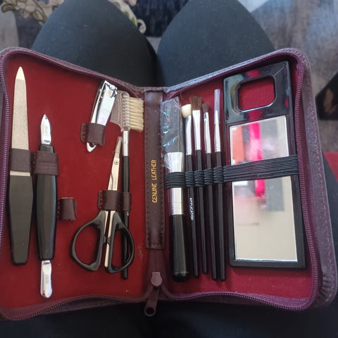 Romslig justerbar toalettmappe.