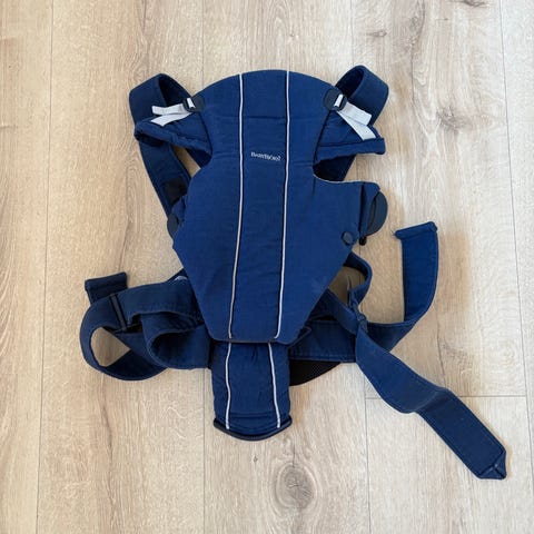 BabyBjörn Bæresele i blå farge. Laget for å bære babyer med justerbare stropper for komfort og støtte. Meget komfortabel i bruk. Selges for 250 kr. Kan sendes mot at kjøper betaler frakt.