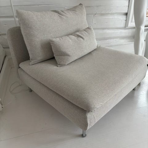 Selger kjempefin hjørnesofa med pall, nett i formen, veldig god å sitte i!