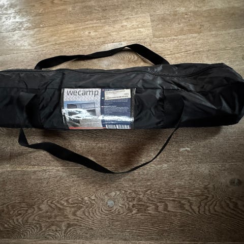 Skjermen er hele 6,8 meter. Den har luftkanaler og pumpes raskt opp fra ett punkt. Ingen 'teltstenger' på denne, men en komplett ramme som gir vindskjermen god stabilitet. Kraftige stormliner gir ekstra beskyttelse ved kraftigere vind. Genial både på piknikk- og campingturer! Skjermen er pakkat i en bæreveske på størrelse med en stor bag.