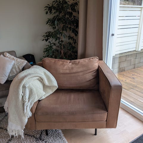 Kul stol,veldig god å sitte i. Litt vanskelig å få frem riktig farge på bildene,den er litt mørkere.