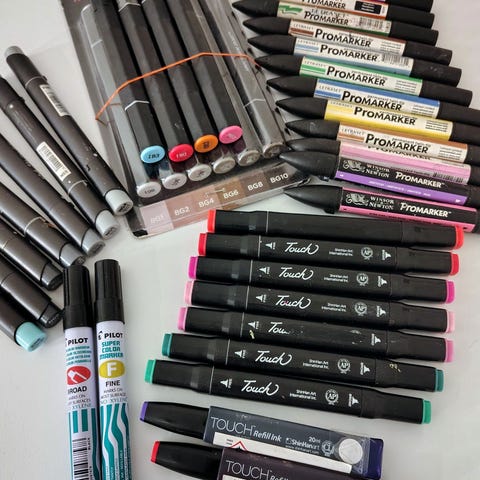 Twin Brush Marker fra Touch er en alkoholbasert og påfyllbar markør som er tilgjengelig i et stort utvalg av farger. På den ene siden finner du en bred spiss, og en penselspiss i den andre.