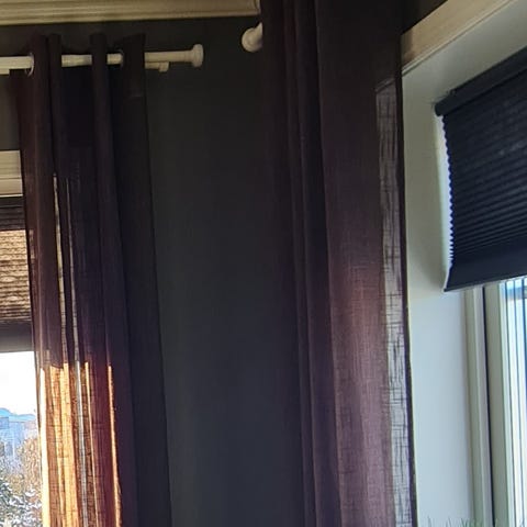 Gråbrune lysdempende gardiner Minos fra Princess med opphengsringer. 135 × 160. Koster 240 kr + frakt på salg.