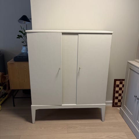 Pent og solid eldre skap selges. Dette er et tungt og stødig møbel med fine detaljer, dekorlister og originalt beslag. Klassisk uttrykk som passer godt i stue, spisestue, gang eller på hytte.
