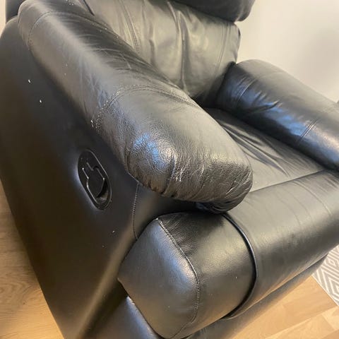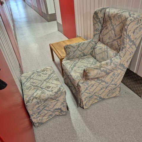 Lenestol med innfellbar fotskammel og nedlegger rygg.