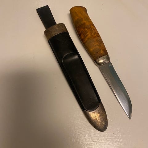 Et fint eksemplar av Peer Gynt- kniven fra David Andersen, lagd 1986.