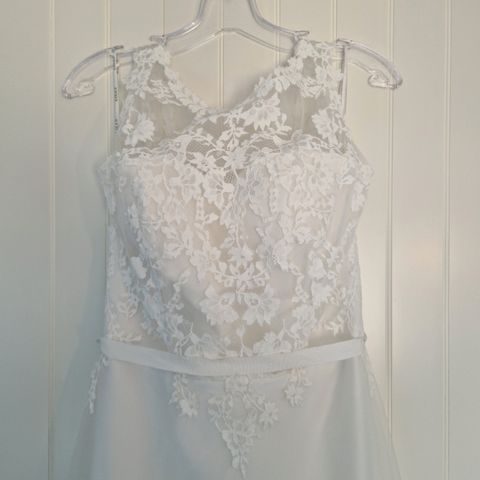 Kjolen selges privat og som den er. Passer for deg som ønsker en enkel brudekjole til fornuftig pris.