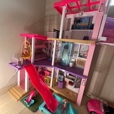 Barbiehus med dukker og mye utstyr