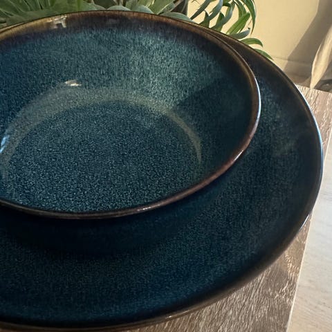 Aida Raw crafted consept. 12 stykk store middagstallerken, mørk blå farge, brune under. 50kr pr stykk, ved kjøp av alle 40 kr pr stykk