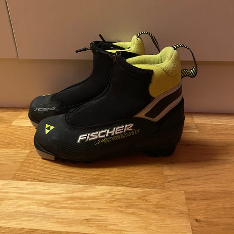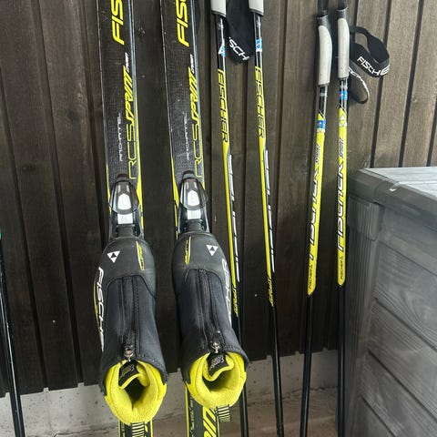 Fischer RCS Sprint langrennsski med tilhørende støvler. Ski og støvler har fester for klassisk langrenn. Støvlene har glidelås og knyting foran for enkel på- og avkledning.