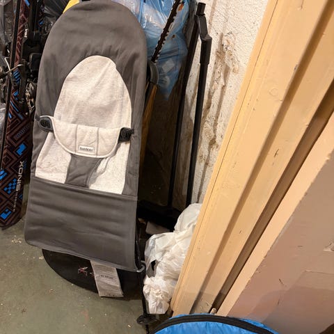 Babybjörn barnestol i grå farge. Stolen har et enkelt og funksjonelt design med lekebøyle festet foran. Egnet for små barn og kan brukes til å gi komfort og støtte under hvile eller lek. Godt brukt, men fult brukanes! Trekket kan tas av og vasket.