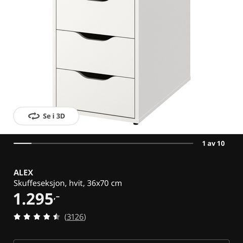 Ønsker å kjøpe blåsvart Alex skuffeseksjon, høyde 70cm.