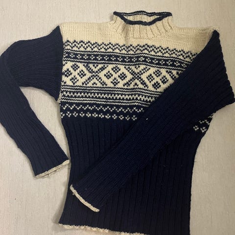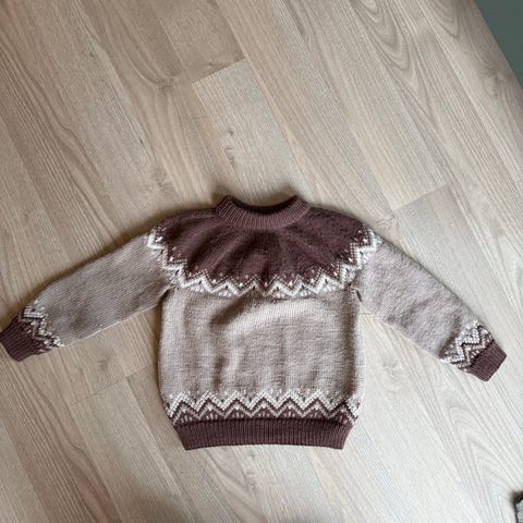 Hjemmestrikket babydress i viking ull garn. Størrelse ca. 6 til 12 mnd.