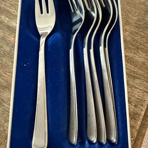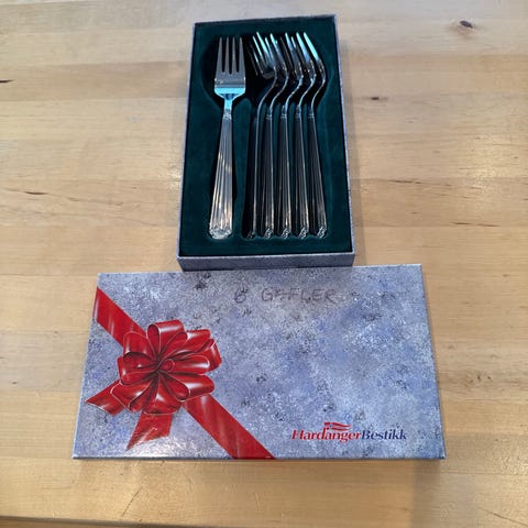 Hardanger Bestikk, påleggsgafler 2 stk. Gaflene er laget i rustfritt stål og leveres i original eske.