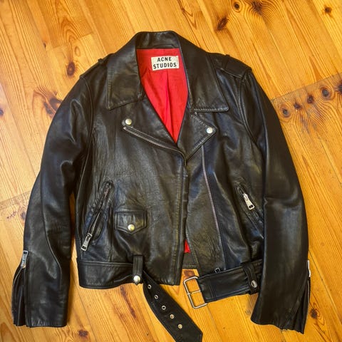 Nydelig skinnjakke fra Acne, strl 36. Denne er ca 10 år gammel, men i fortsatt fin stand.