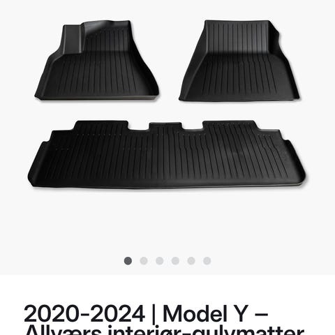 Orginale Tesla Model Y 2020 - 2024 Allværs interiør-gulvmattersett i svart materiale. Sett inkluderer matter til både for- og bakseter for beskyttelse av bilens gulv. Designet for å passe spesifikt til Tesla model Y 2020 til 2024 for optimal passform og funksjonalitet.
