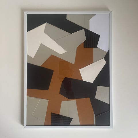Abstrakt kunstplakat med svart ramme, som viser to organiske former i brun og svart på hvit bakgrunn. Passer som dekorasjon i ulike rom.