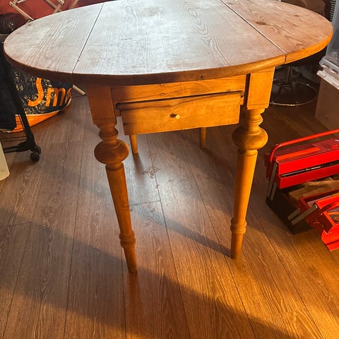 Ønsker å kjøpe et rundt/rektangulært spisebord i valnøtt med ileggsplate!