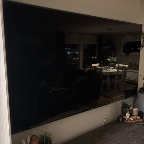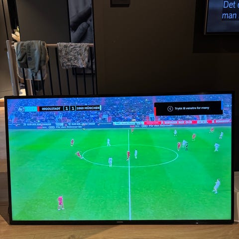 TV-en fungerer som den skal. En liten lys flekk på skjermen, se bilde 3. mener å huske TV-en er fra 2017. Følger med fjernkontroll og stativ for veggfeste som er skrudd fast til TV-en.