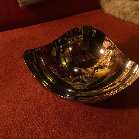 Georg Jensen gavepakke bestående av to skåler i stål. Den ene skålen er Medium størrelse, og den andre er Large størrelse. Skålene har en enkel og tidløs design, egnet for dekorasjon eller servering.
