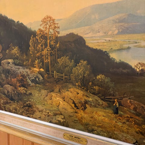 Litografi over Bolkesjø. Utført av F. Larsen. Tidlig 1800-tallet.