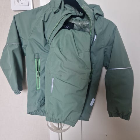 Svært lite brukt lett skalltøy fra Reima i veldig god stand. Buksen har ikke strikk, men knapper til å feste strikk hvis ønskelig.