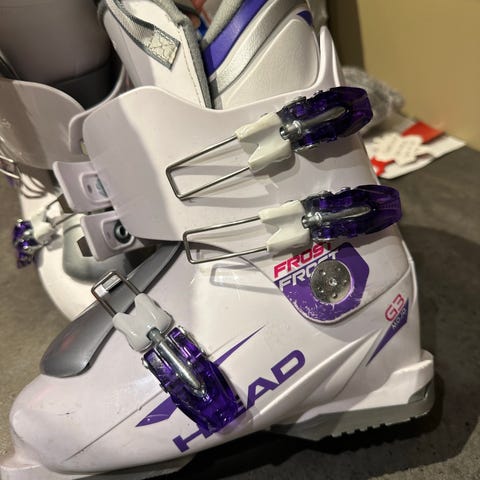 Head skistøvler i størrelse 22,0-22,5 cm. Fire spenner for god justering og passform.