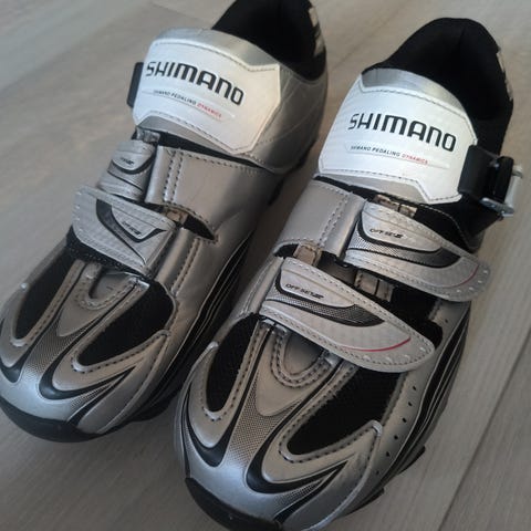 Shimano RC3 Wide sykkelsko i størrelse 42. Skoene er svarte og designet for sykling med bred passform for økt komfort. De har en justerbar lukking for god tilpasning og ventilasjonshull for bedre pusteevne.