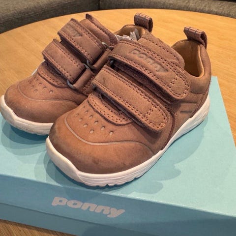 Selger et par Ponny førstegangssko i mykt skinn, størrelse 20. Skoene er brukt av en 1-åring ute et fåtall ganger og er i svært god stand.