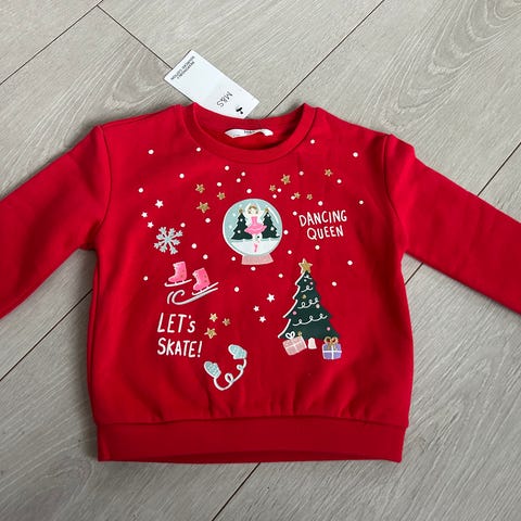 Julegenser str. 110/116 med paljetter som kan vendes for ulike effekter. Dinosaur, isbjørn, reinsdyr og julenisse. Pent brukt et par ganger.