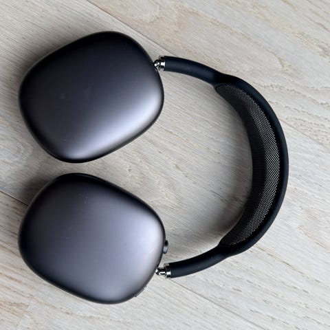 Apple AirPods Max hodetelefoner i svart farge. Over-ear design med polstrede øreputer for komfort. Trådløs tilkobling med aktiv støydemping. Inkluderer oppbevaringsetui.