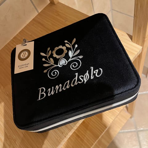 Har du tromsbunad men ingen plass å oppbevare sølv? Denne fine vesken tar godt vare på sølvet ditt samtidig som den er veldig fin!