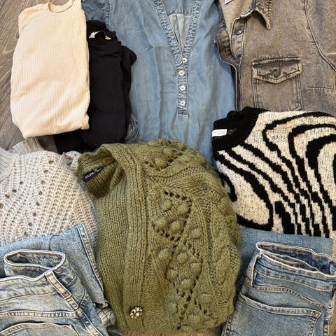 LTB bukse str 28/30 + 2 strikkede gensere og en hvit genser fra bik bok