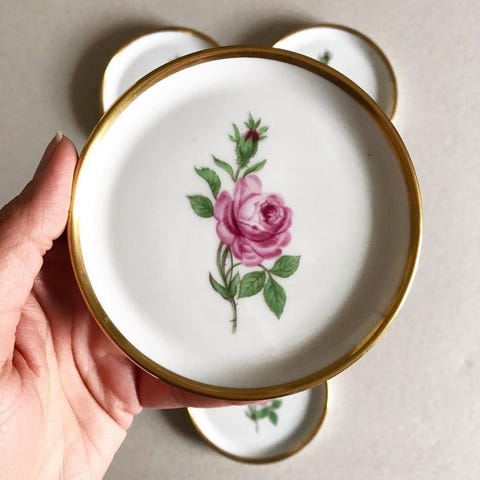 Selvlaget etasjefat av tysk porselen fra Fürstenberg og Tirschenreuth og polsk Walbrzych