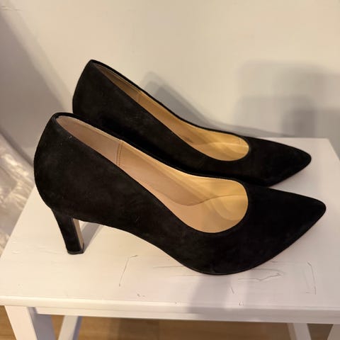 Ca 6 cm hæl. Kun brukt én gang og fremstår som helt nye. Et tidløst og eksklusivt uttrykk - like fine til hverdags som til pent.