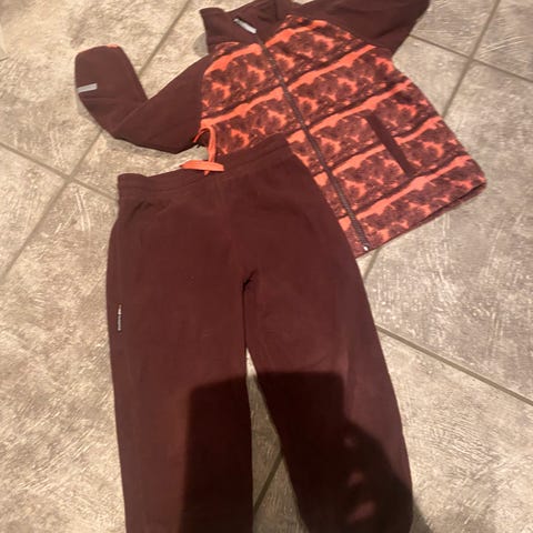Skogstad Mikkel fleece bukse og jakke i størrelse 110, unisex. Settet består av jakke og bukse i rosa farge. Har stramming i bunn av jakke. Materialet er mykt og egnet for barn.