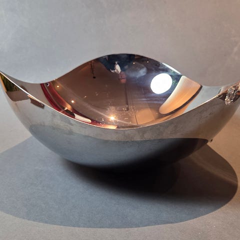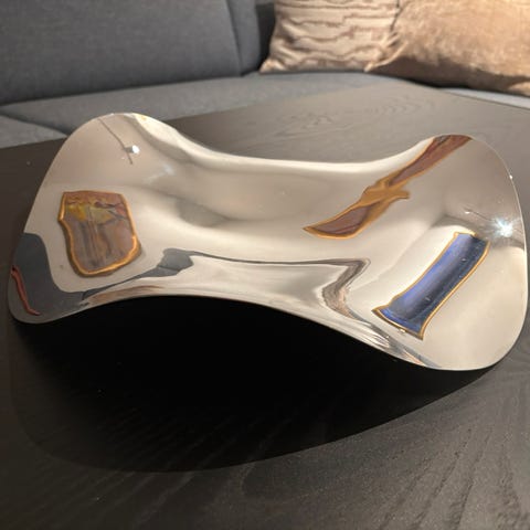 Georg Jensen dekorasjon laget i rustfritt stål. Skulpturelt design med bølgende former som reflekterer lys. Passer som dekorativt element i hjem eller kontor.