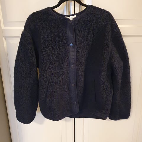 H&M fleecejakke i størrelse M for dame. Jakken er laget av fleece og har en beige farge. Som ny