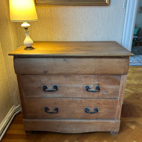 Antikt/retro nattbord i heltre eik med marmorplate