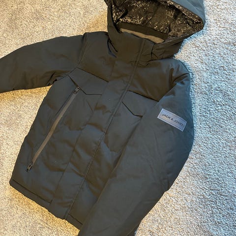 Pent brukt boblejakke fra Jack&Jones. Kan ta flere bilder om ønskelig. Den er lite brukt, mest brukt til hjemmebruk, til og fra butikken og et par ganger på skolen. Varm og god med store lommer som kan åpnes begge veier.