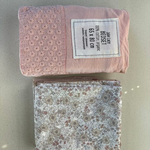 Masse fine sengklær sett til jente. To til babydyne og tri stk te sprinkelseng. Pluss ett ekstra putetrekk 😊 målene står under bildene.