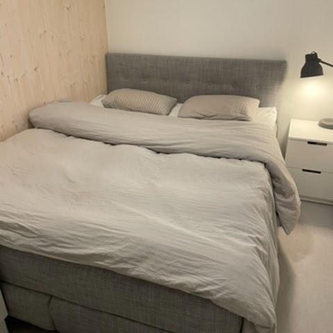 kr 4.000,- . Veldig lite brukt. Kan også brukes som 2 separate senger.