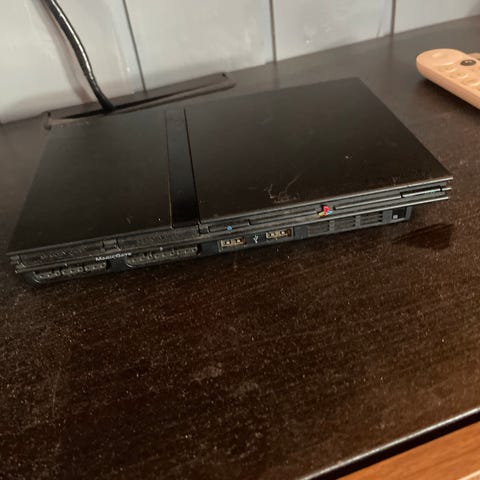 Sony PlayStation 2 spillkonsoll med kontroller og spill
