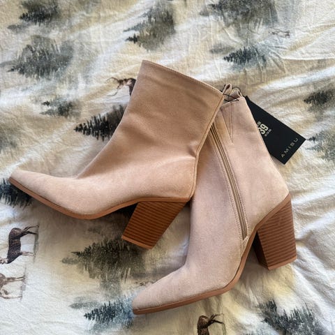 AMISU Hæler i størrelse 36 med svart farge. Skoene har en åpen hæl med stropp og dekorative detaljer foran. Egnet for formelle eller festlige anledninger. Brukt 1 gang.